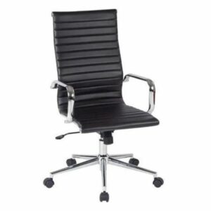 The HB Sleek High-Back Executive Chair – Black Leatherette is designed with a modern minimalistic touch while ensuring executive comfort. With its ribbed design, premium upholstery, and chrome finish, this chair brings elegance and professionalism to any workspace.